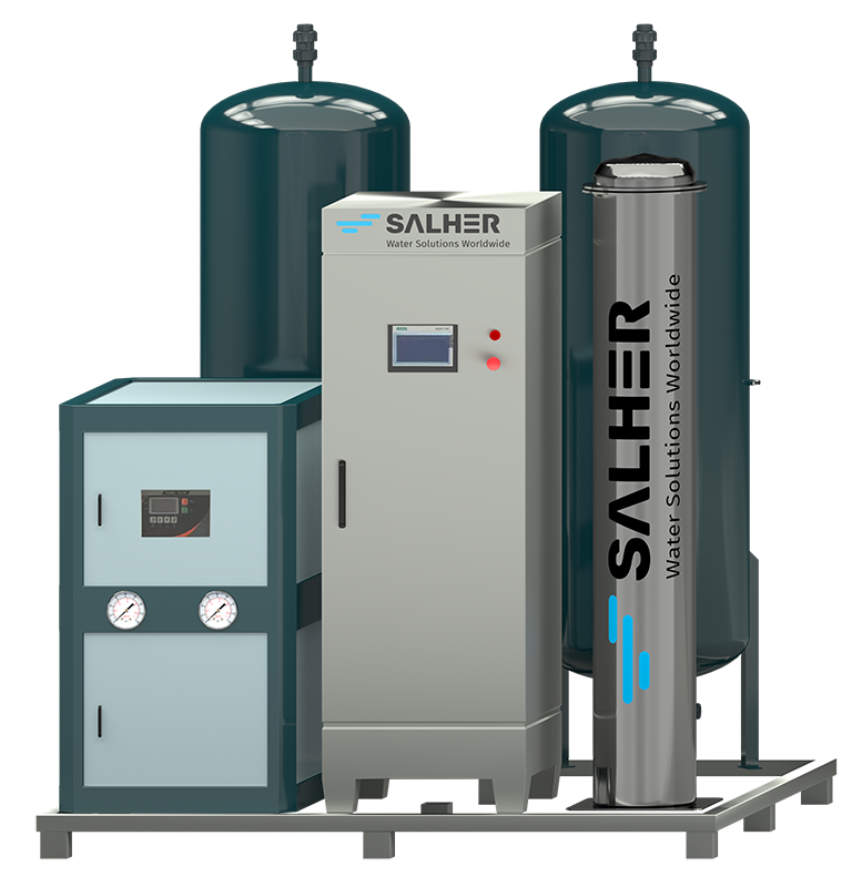 Es un equipo automático de generación de ozono como sistema de pretratamiento para la eliminación de turbiedad, detergentes, sustancias tensoactivas y oxidación de compuestos. Empleado también como desinfectante, con acción de gran efectividad frente a bacterias y patógenos y poderoso inactivador de virus y microorganismos.